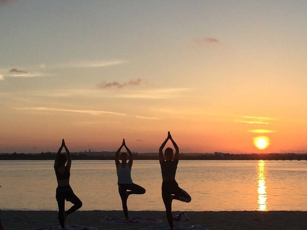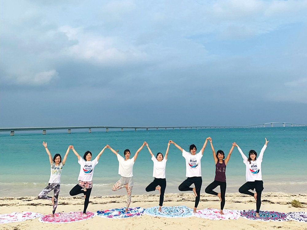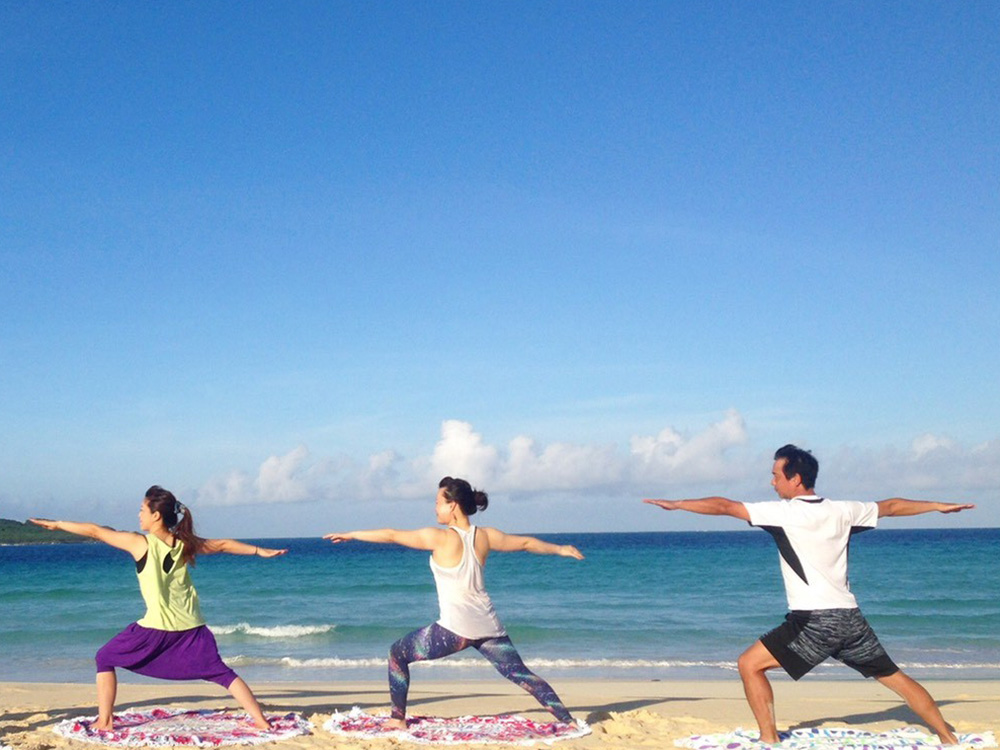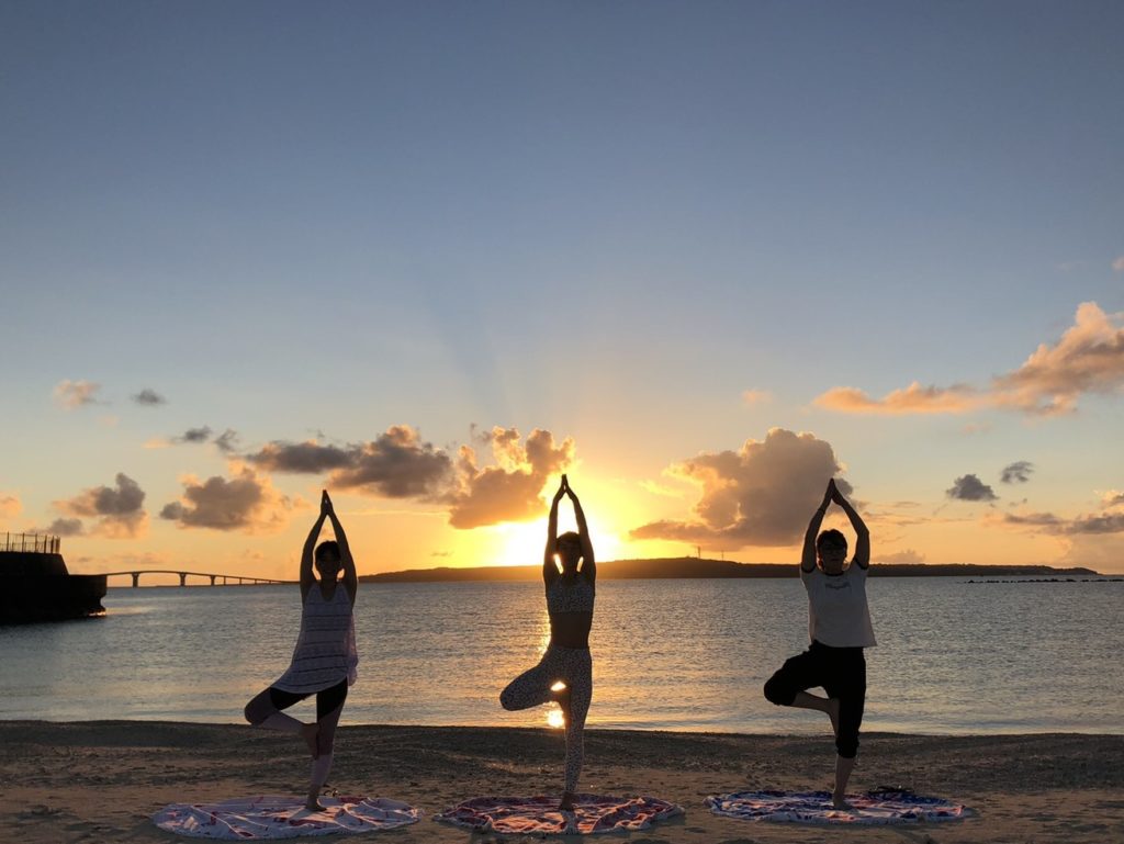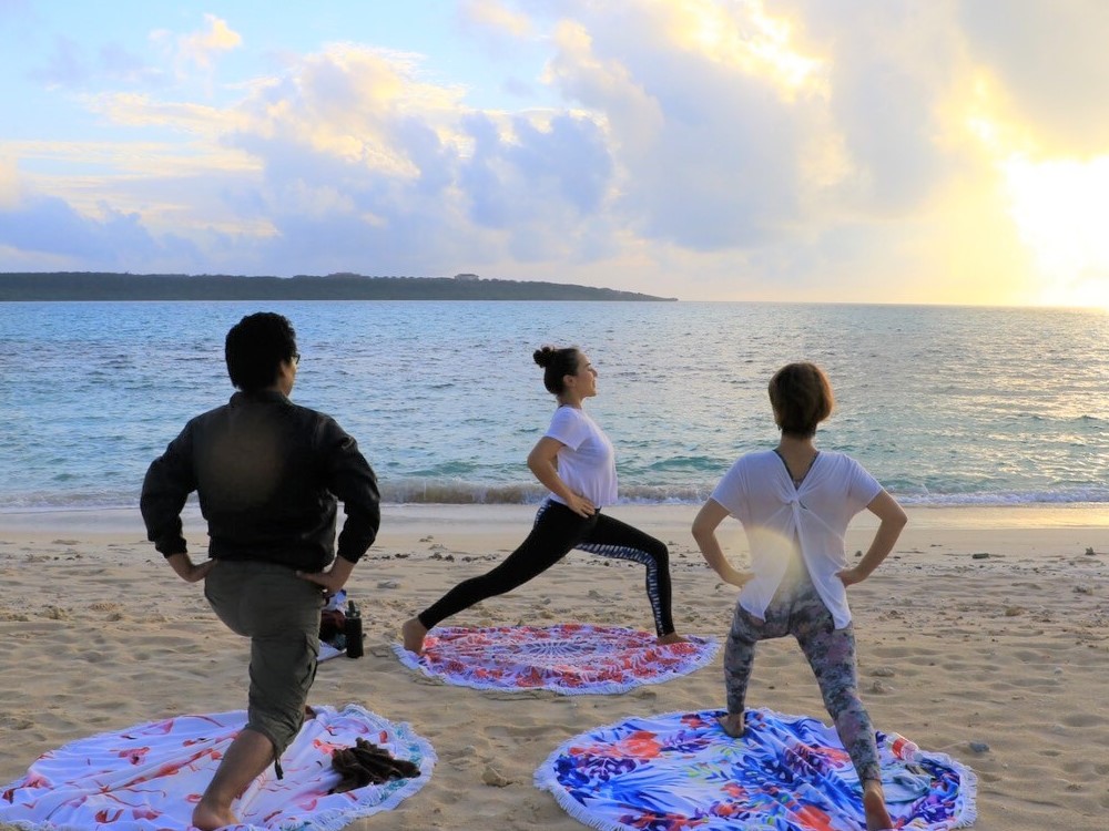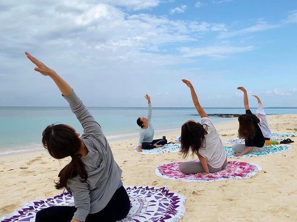 青い海と青い空に囲まれながらのすっきり動けるヨガレッスン。