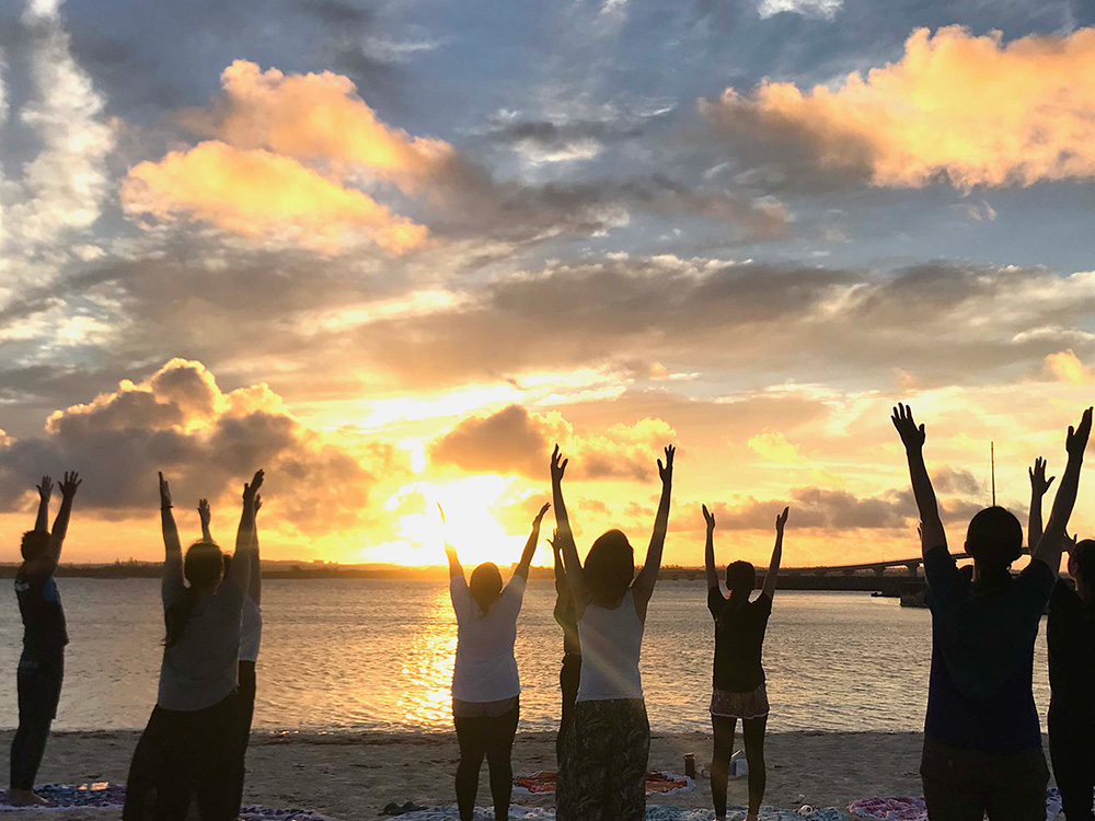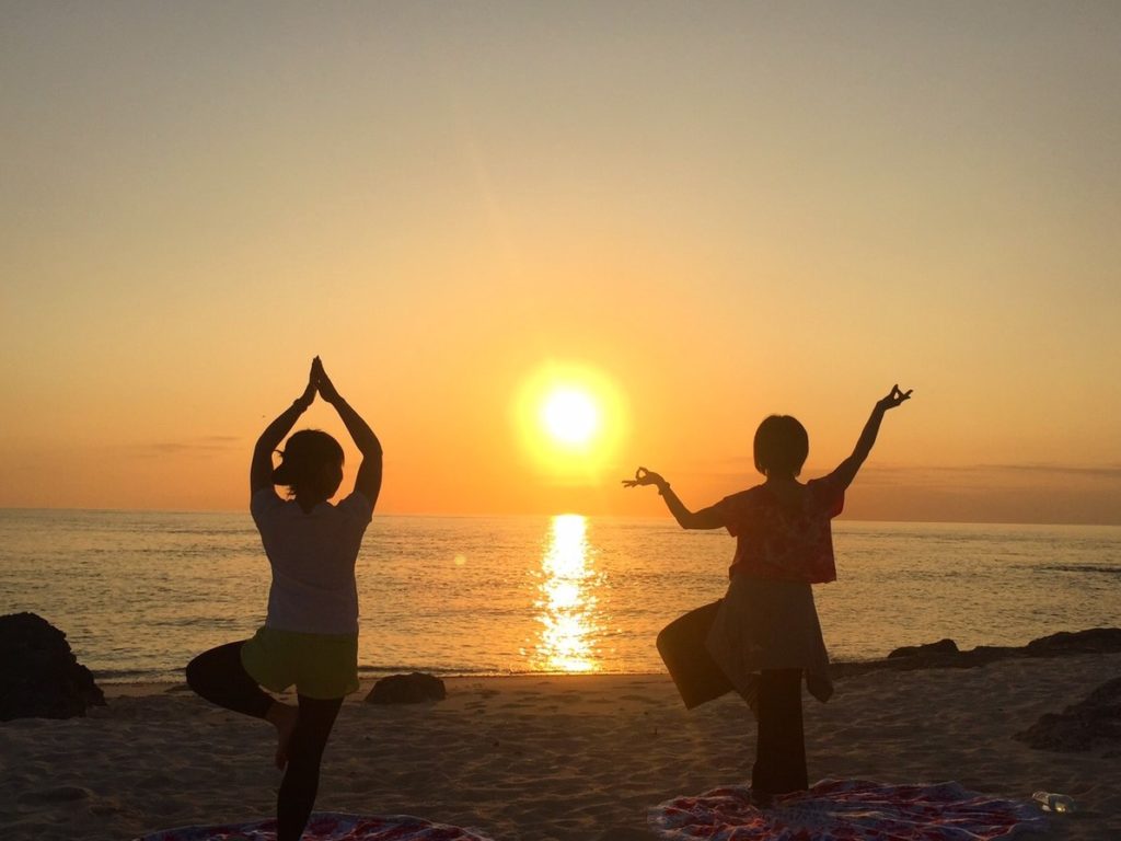 夕陽の時間に合わせてゆったり行うヨガレッスン。