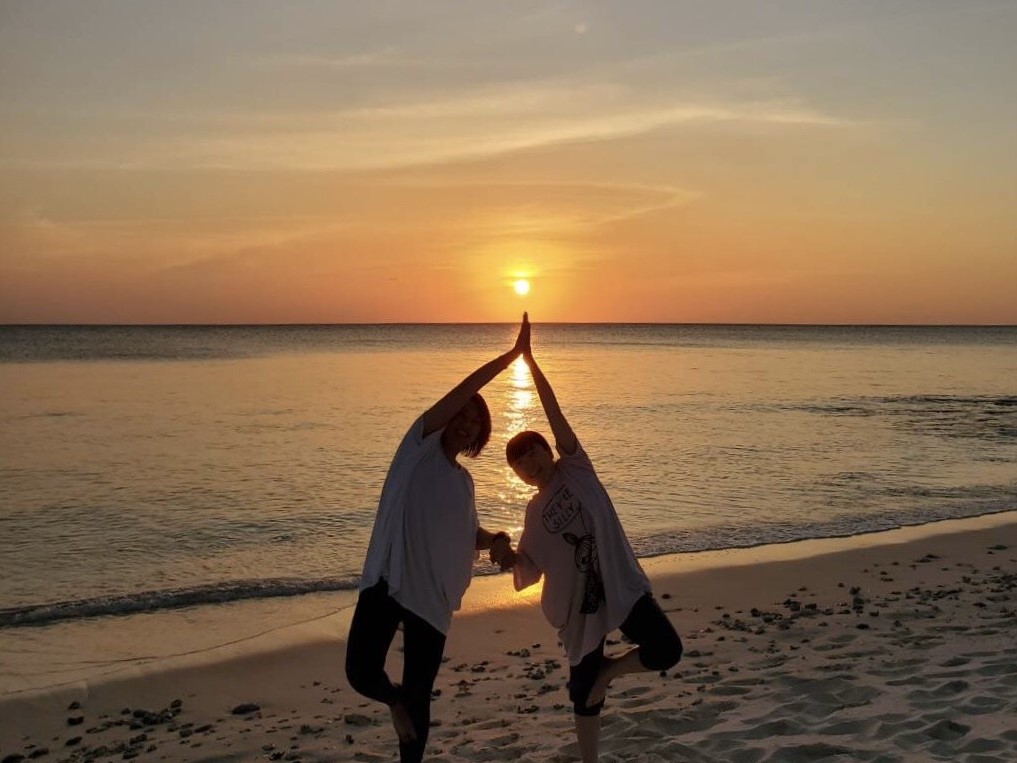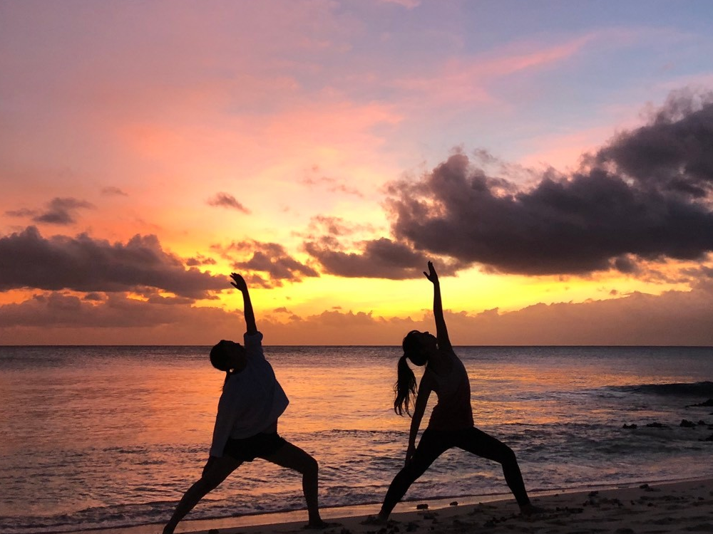 オレンジ色の太陽と、ゆっくり変わっていく空と海の色を眺めながら大自然を感じることのできる4つのヨガ、サンライズヨガ、モーニングヨガ、サンセットヨガ、サンライズヨガ、があります。